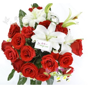 This vase of red roses and white lilies can be delivered anywhere in China, including Hong Kong, Macau and Taiwan.