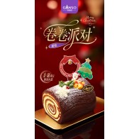 Pastel festivo de Navidad con forma de tronco de Navidad Ganso , elaborado con una suave capa de bizcocho y un rico relleno de chocolate y crema, decorado con glaseado nevado y adornos navideños.