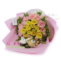 पीले और गुलाबी गुलाबों का यह गुलदस्ता हांगकांग, मकाऊ और ताइवान सहित चीन में कहीं भी पहुंचाया जा सकता है।
