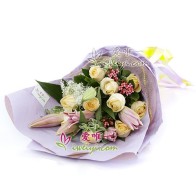 शैम्पेन गुलाब और पीले लिली के इस गुलदस्ते को हांगकांग, मकाऊ और ताइवान सहित चीन में कहीं भी पहुंचाया जा सकता है।