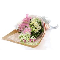 गुलाबी गुलाब और गुलाबी लिली का यह गुलदस्ता हांगकांग, मकाऊ और ताइवान सहित चीन में कहीं भी पहुंचाया जा सकता है।