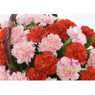 ताजा गुलाबी कारनेशन के साथ सुंदर माँ थीम्ड जन्मदिन का केक।