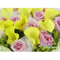 गुलाबी गुलाब और पीले कैला लिली का यह गुलदस्ता हांगकांग, मकाऊ और ताइवान सहित चीन में कहीं भी पहुंचाया जा सकता है।