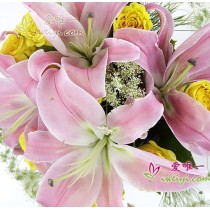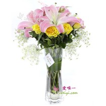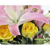 पीले गुलाब और गुलाबी लिली के इस फूलदान को हांगकांग, मकाऊ और ताइवान सहित चीन में कहीं भी पहुंचाया जा सकता है।