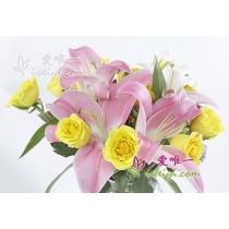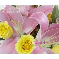 पीले गुलाब और गुलाबी लिली के इस फूलदान को हांगकांग, मकाऊ और ताइवान सहित चीन में कहीं भी पहुंचाया जा सकता है।
