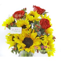 सूरजमुखी और लाल गुलाबों का यह फूलदान हांगकांग, मकाऊ और ताइवान सहित चीन में कहीं भी पहुंचाया जा सकता है।