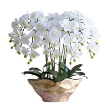 गमले में लगा 8 तने वाला सफ़ेद फेलेनोप्सिस आर्किड