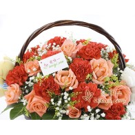 このピンクのバラと赤いカーネーションのバスケットは、中国全土、香港、マカオ、台湾を含むどこでも配達可能です。
