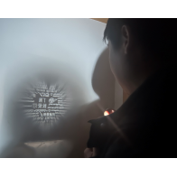 A peça central, que refrata a luz, exibe 100 maneiras diferentes de dizer "Eu te amo" em diversos idiomas quando iluminada.
