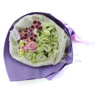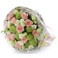 Este buquê de rosas cor de champanhe e cravos rosa pode ser entregue em qualquer lugar da China, incluindo Hong Kong, Macau e Taiwan.