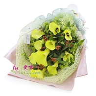 Este buquê de copos-de-leite amarelos pode ser entregue em qualquer lugar da China, incluindo Hong Kong, Macau e Taiwan.