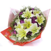 Este buquê de lírios brancos pode ser entregue em qualquer lugar da China, incluindo Hong Kong, Macau e Taiwan.