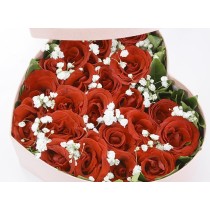 Esta caixa em forma de coração com rosas vermelhas pode ser entregue em qualquer lugar da China, incluindo Hong Kong, Macau e Taiwan.