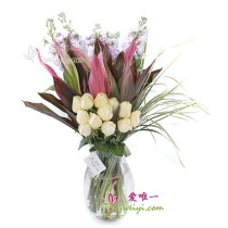 Este vaso de rosas cor de champanhe pode ser entregue em qualquer lugar da China, incluindo Hong Kong, Macau e Taiwan.